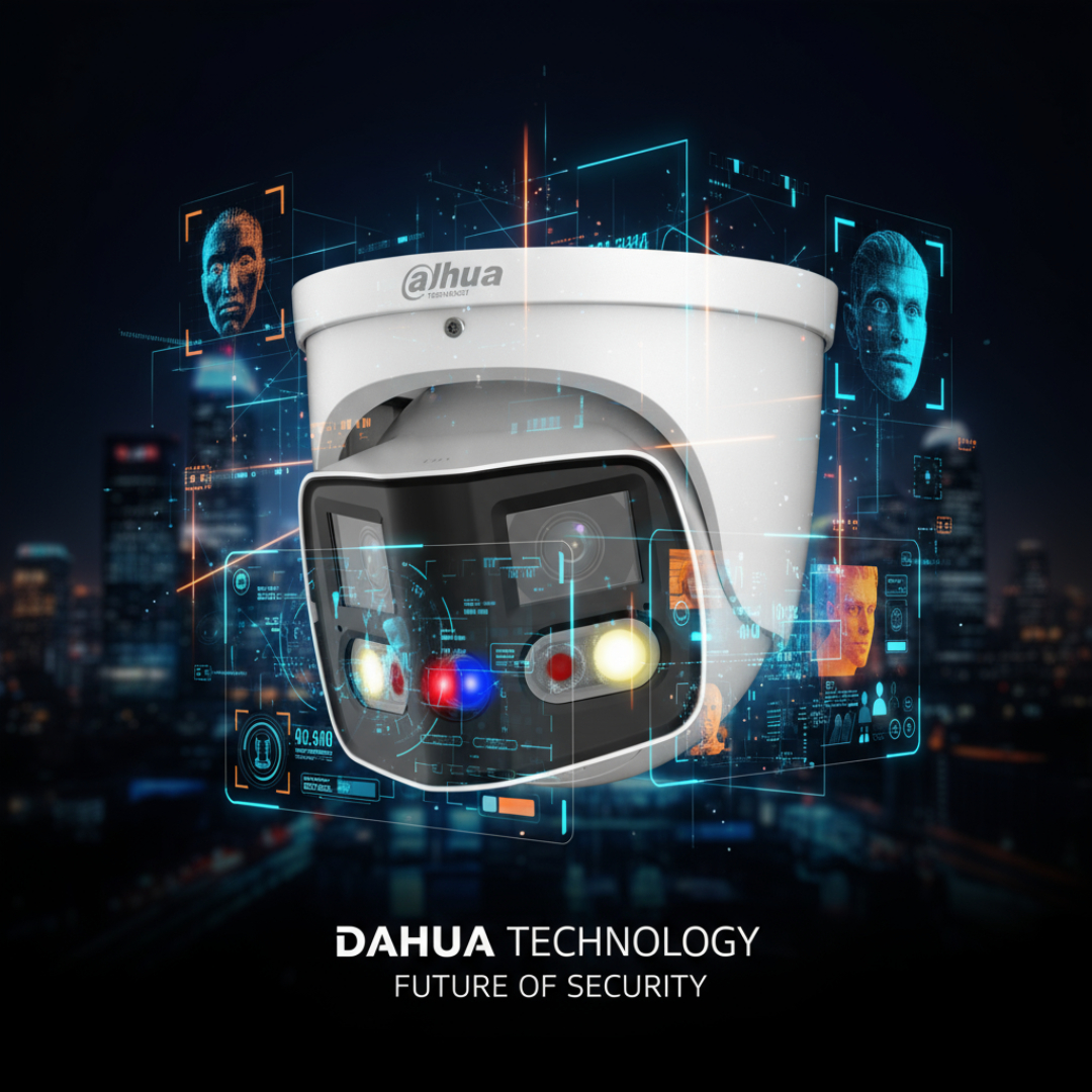 The Dahua 2x4MP TiOC Duo Splicing Fixed-focal Eyeball WizSense Network Camera (model IPC-PDW3849-A180-AS-PV) delivers an impressive 180° panoramic wide-angle view by seamlessly splicing dual 4MP images into a crisp 8MP (4096×1860) resolution at 20 frames per second. Equipped with advanced AI-powered WizSense technology, the camera intelligently detects humans and vehicles, significantly reducing false alarms through Smart Motion Detection (SMD 4.0).